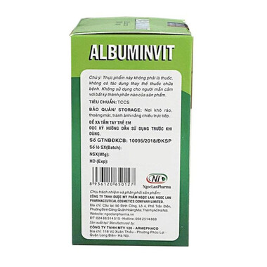 Albuminvit là viên uống hỗ trợ sức khỏe giúp bổ sung Albumin, L-Cystine, DHA và nhiều vi chất quan trọng giúp tăng cường thể trạng, cải thiện miễn dịch, đặc biệt phù hợp với người suy nhược, mệt mỏi, người có chức năng gan suy yếu. Albumin có vai trò quan trọng trong việc duy trì thể tích huyết tương, bảo vệ cơ thể khỏi các tác nhân viêm và hỗ trợ chức năng gan.