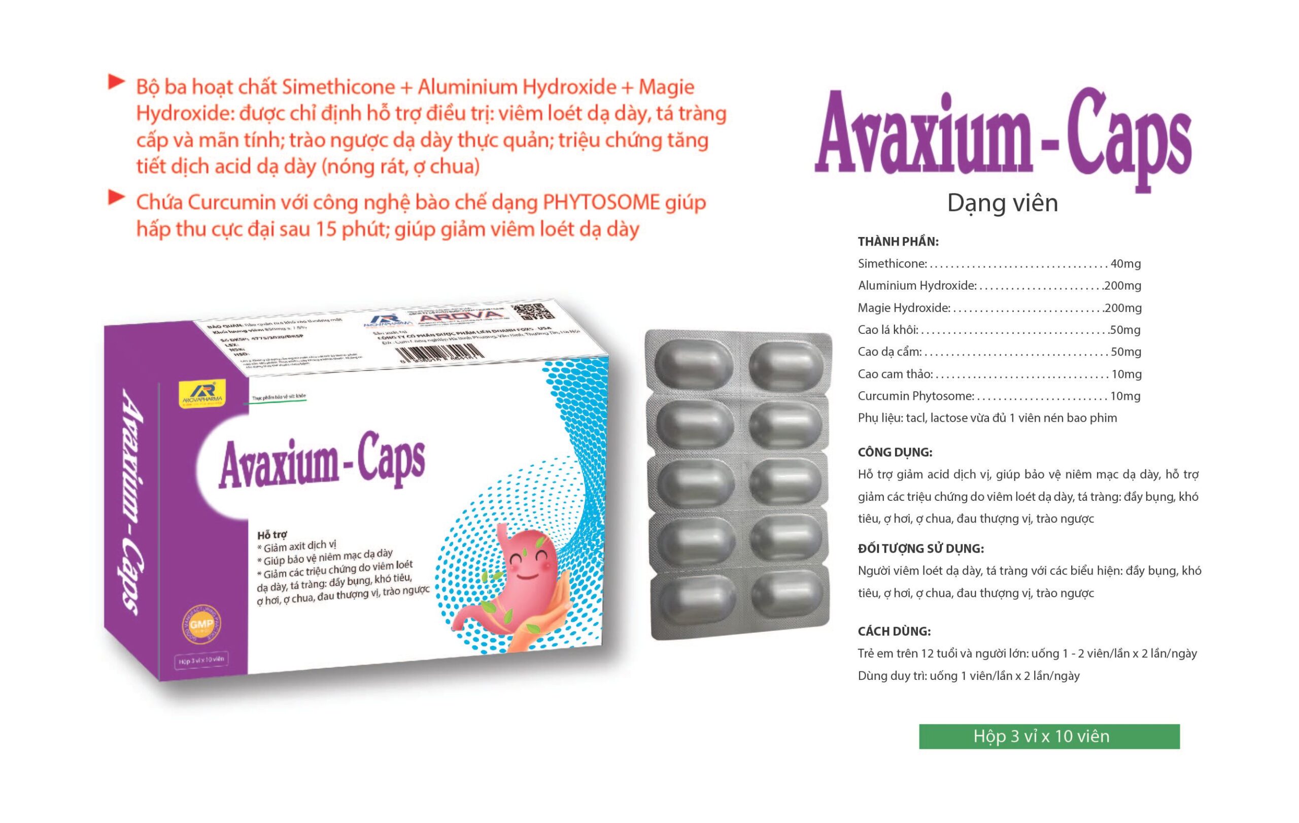 Hỗ trợ giảm acid dịch vị, giúp bảo vệ niêm mạc dạ dày, hỗ trợ giảm các triệu chứng do viêm loét dạ dày, tá tràng: đầy bụng, khó tiêu, ợ hơi, ợ chua, đau thượng vị, trào ngược