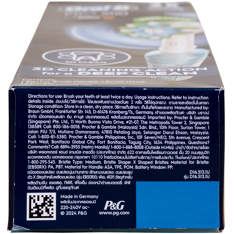 - Công nghệ làm sạch 3D Clean Action tiên tiến: Bàn chải sử dụng chuyển động xoay, rung và dao động đồng thời để loại bỏ mảng bám hiệu quả hơn gấp 2 lần so với bàn chải tay thông thường. Cơ chế làm sạch 3 chiều này giúp đánh bật mảng bám ở cả những vị trí khó tiếp cận, mang lại cảm giác răng miệng sạch sâu và hơi thở tươi mát hơn sau mỗi lần chải.