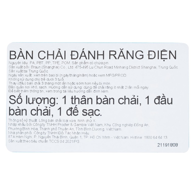 Thay (đầu) bàn chải 3 tháng một lần hoặc sớm hơn nếu bị mòn.