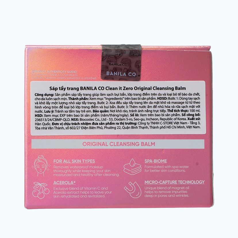 BANILA CO Clean it Zero Sáp tẩy trang giúp làm sạch bụi bẩn, lớp trang điểm và loại bỏ tế bào da chết 100mlSẢN PHẨM