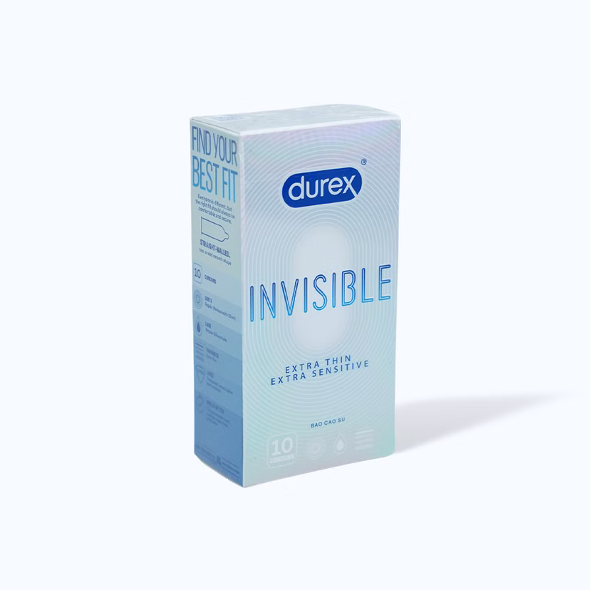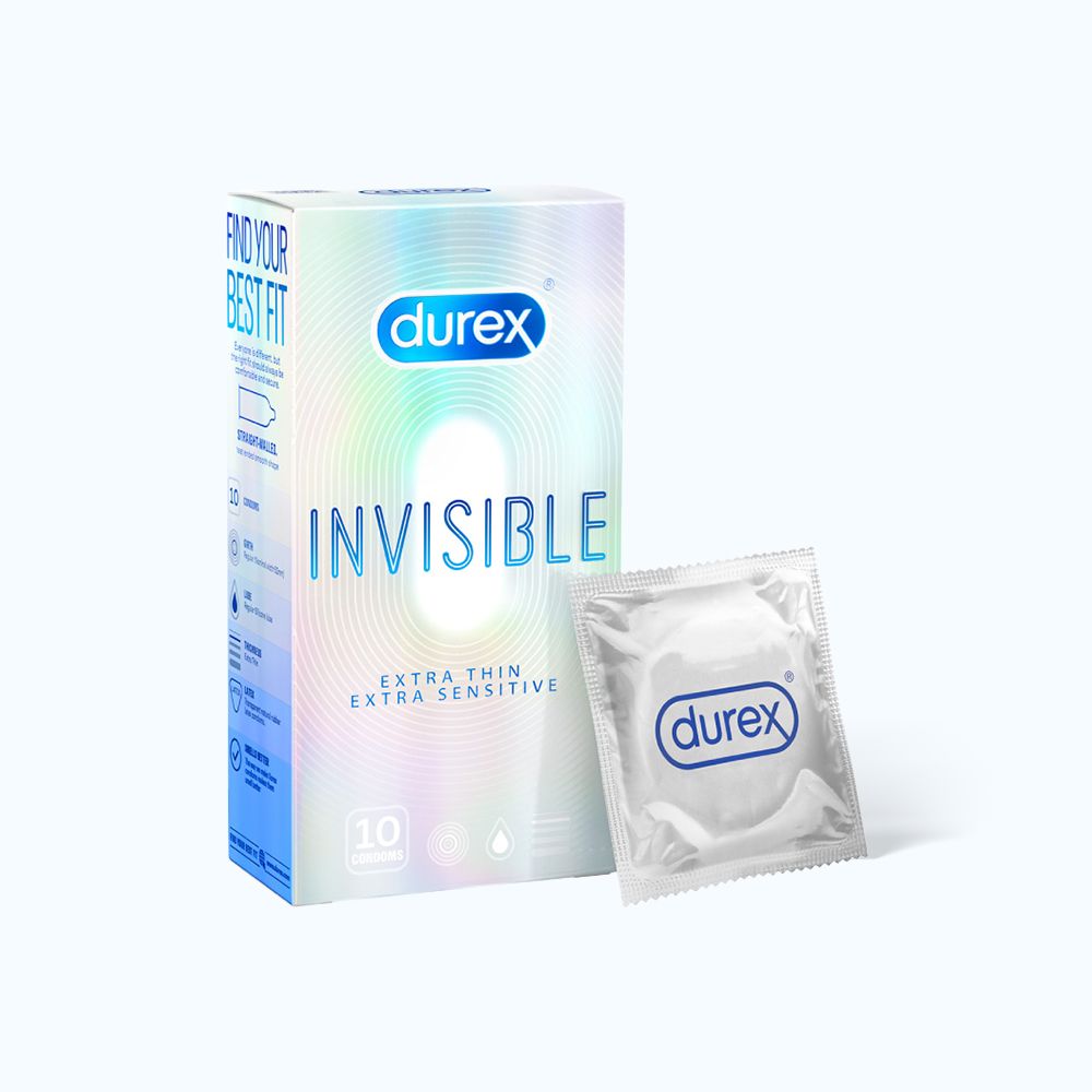 Bao cao su DUREX Invisible Extra Thin Extra Sensitive siêu mỏng, vừa vặn và ôm sát (hộp 10 cái)Bao cao su DUREX Invisible Extra Thin Extra Sensitive siêu mỏng, vừa vặn và ôm sát (hộp 10 cái)