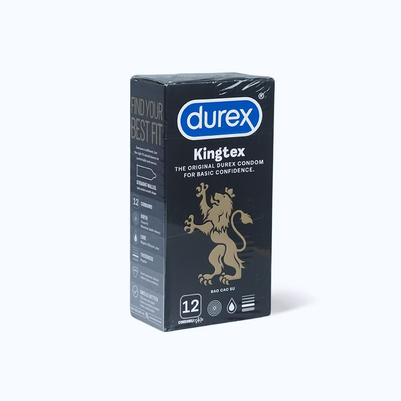 Bao Cao Su DUREX Kingtex với kích thước đường kính 49mm, ôm sát, vừa vặn (hộp 12 cái)