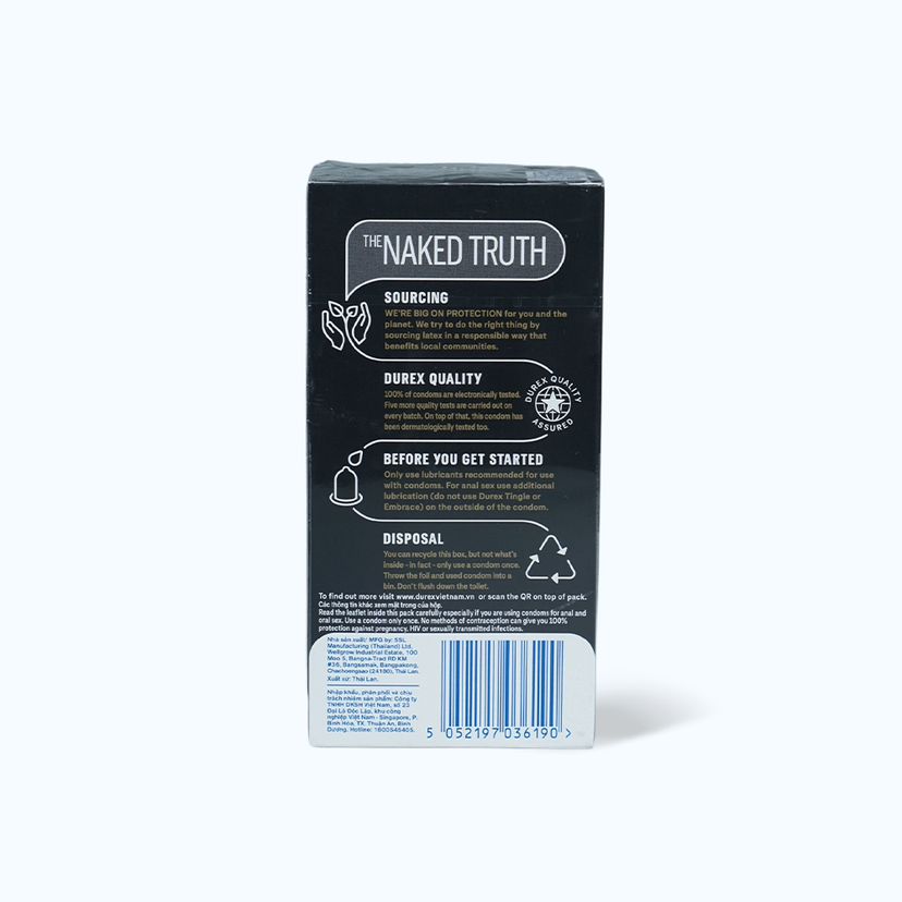 - 100% bao cao su Durex được kiểm nghiệm bằng điện tử cùng 5 công đoạn kiểm tra chất lượng, cũng như được kiểm nghiệm trên da.