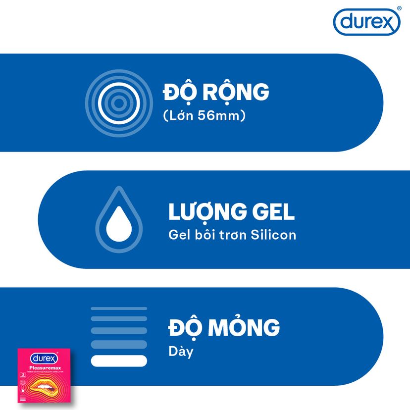 Bao cao su DUREX Pleasuremax có gân và hạt nổi dọc thân bao (hộp 3 cái)SẢN PHẨM