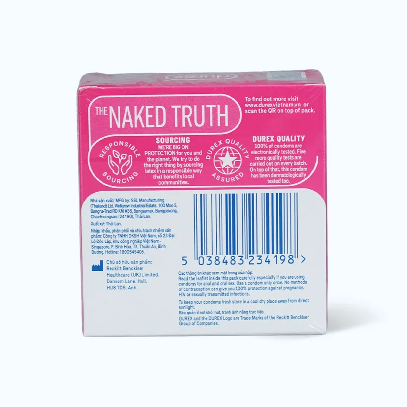 - 100% bao cao su Durex được kiểm nghiệm bằng điện tử cùng 5 công đoạn kiểm tra chất lượng, cũng như được kiểm nghiệm trên da.