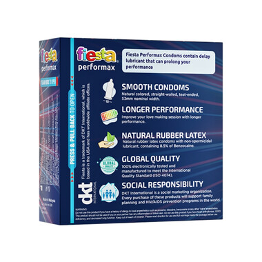 Bao Cao Su Fiesta Perfomax (53mm) – Kéo Dài Thời Gian Thời Gian Quan Hệ (Hộp 3 Cái)