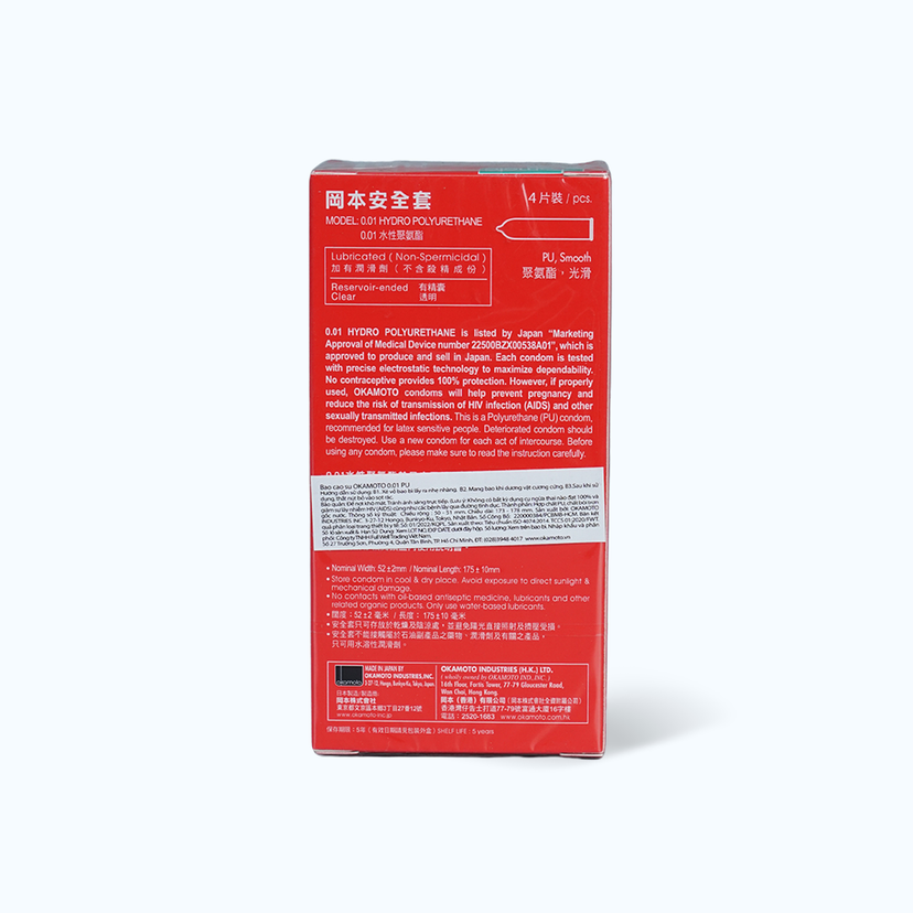Tác dụng phụ BAO CAO SU OKAMOTO 0.01 ZERO ONE (Hộp 4 Cái)