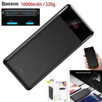 Baseus 10000mAh Digital LCD Power Bank Portable External Battery 2 USB Charger