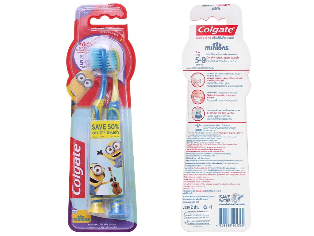 Bộ 2 bàn chải cho bé 5 - 9 tuổi Colgate Minion lông siêu mềm số lượng