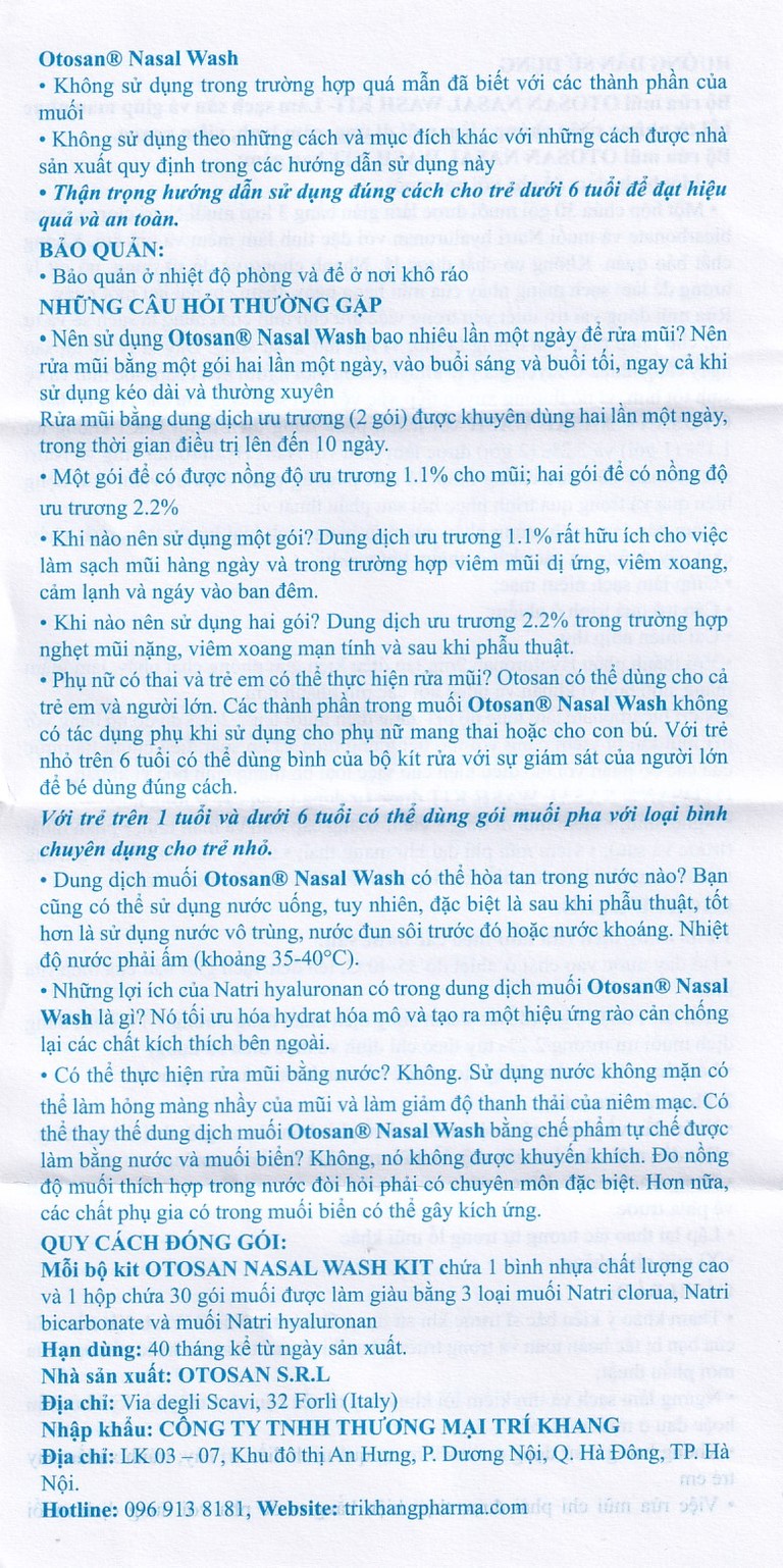 Việc rửa mũi chỉ phải được thực hiện bằng nước pha với dung dịch muối Otosan Nasal wash.