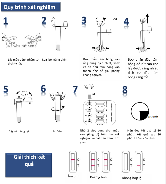 - Chỉ sử dụng tăm bông vô trùng được cung cấp trong Bộ Respiratory Combo Antigen Rapid Test.