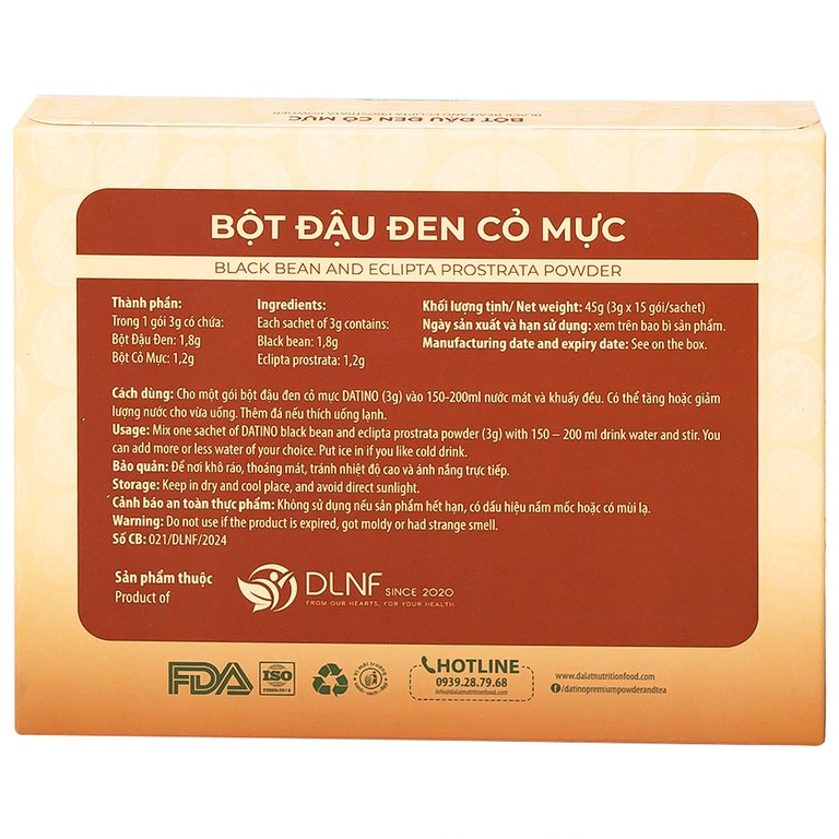 Bột Đậu Đen Cỏ Mực Nguyên Chất Datino (15 gói x 3g)Bột Đậu Đen Cỏ Mực Nguyên Chất Datino (15 gói x 3g)