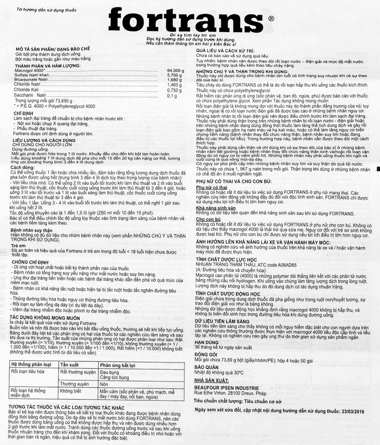 Trẻ em: Độ an toàn và hiệu quả của Fortrans ở trẻ em trong độ tuổi < 18 tuổi chưa được thiết lập.