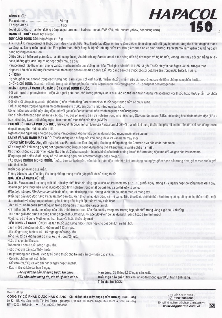 Bột Hapacol 150 DHG giảm đau, hạ sốt (24 gói)SẢN PHẨM