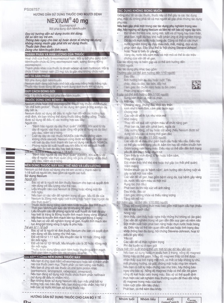 Liều khuyến cáo của Nexium là 20ng hoặc 40mg một lần mỗi ngày.