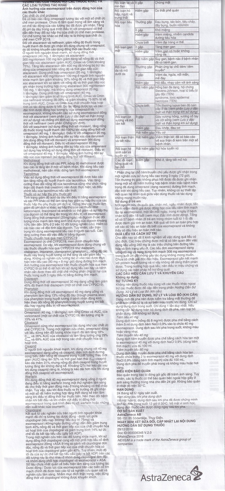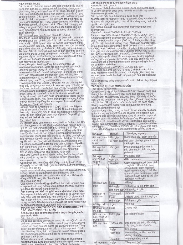 Khi dùng đồng thời với các PPI, nồng độ methotrexate được báo cáo là tăng lên ở một số bệnh nhân. Khi dùng liều cao methotrexate, nên cân nhắc dừng tạm thời esomeprazole.
