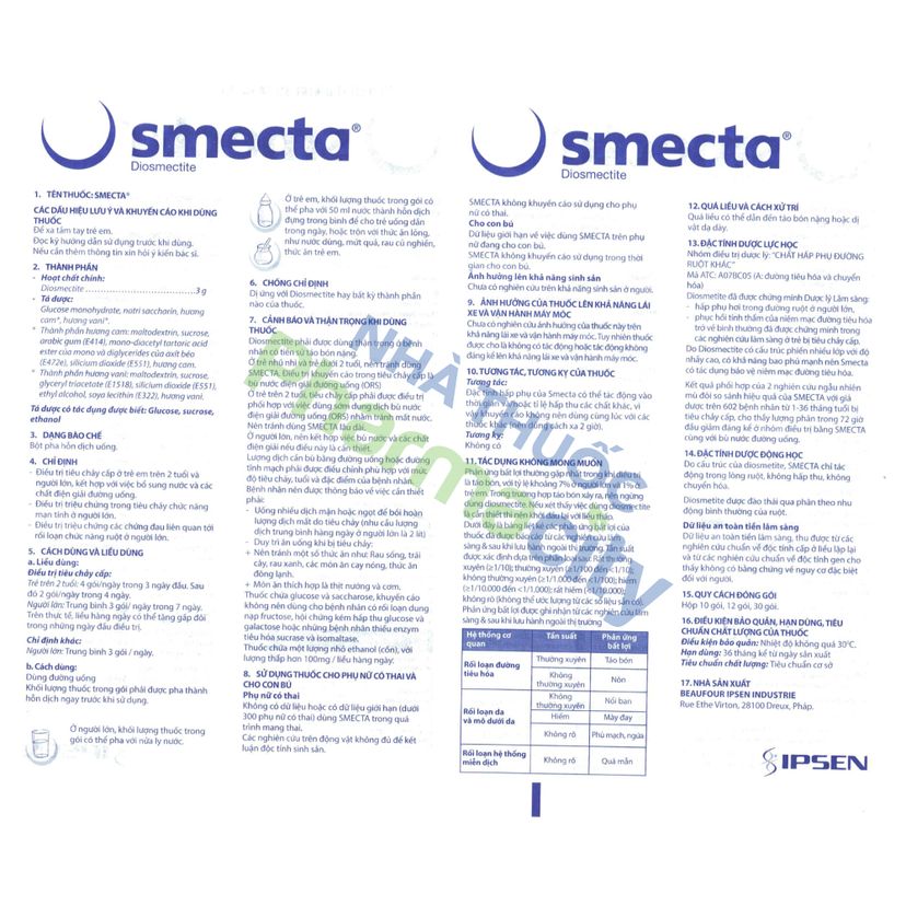 Đặc tính hấp phụ của Smecta có thể tác động vào thời gian và/hoặc tỉ lệ hấp thu các chất khác, vì vậy khuyến cáo không nên dùng cùng lúc với các thuốc khác (nên dùng cách xa 2 giờ).’