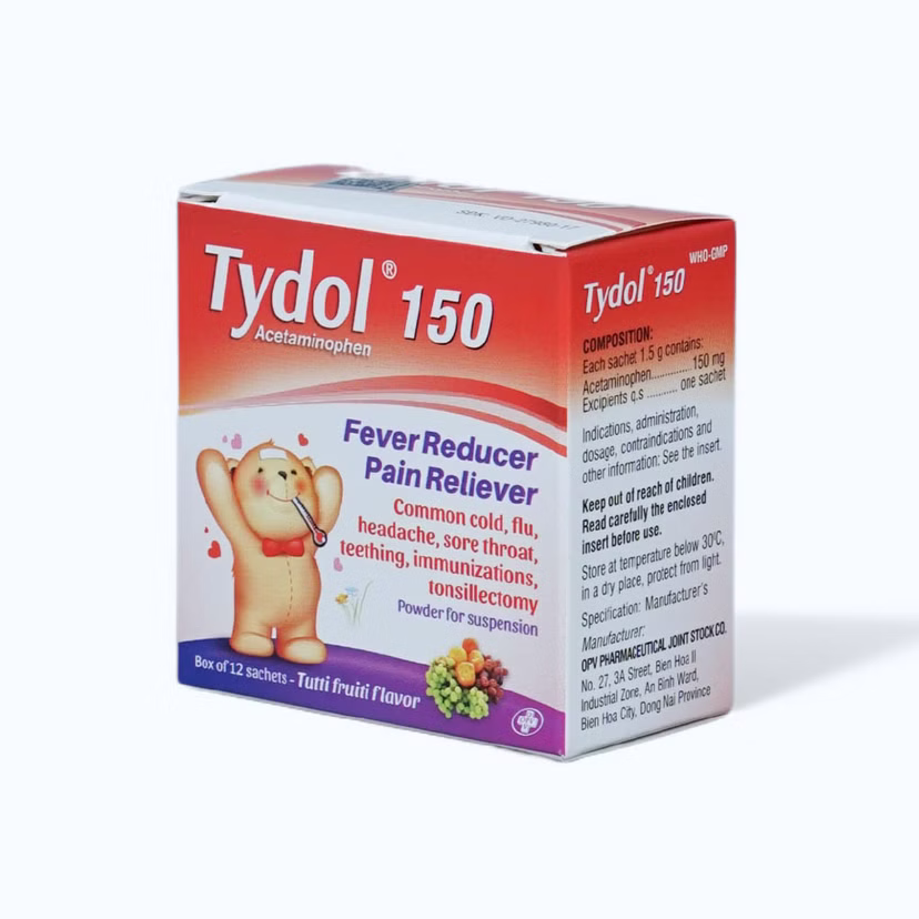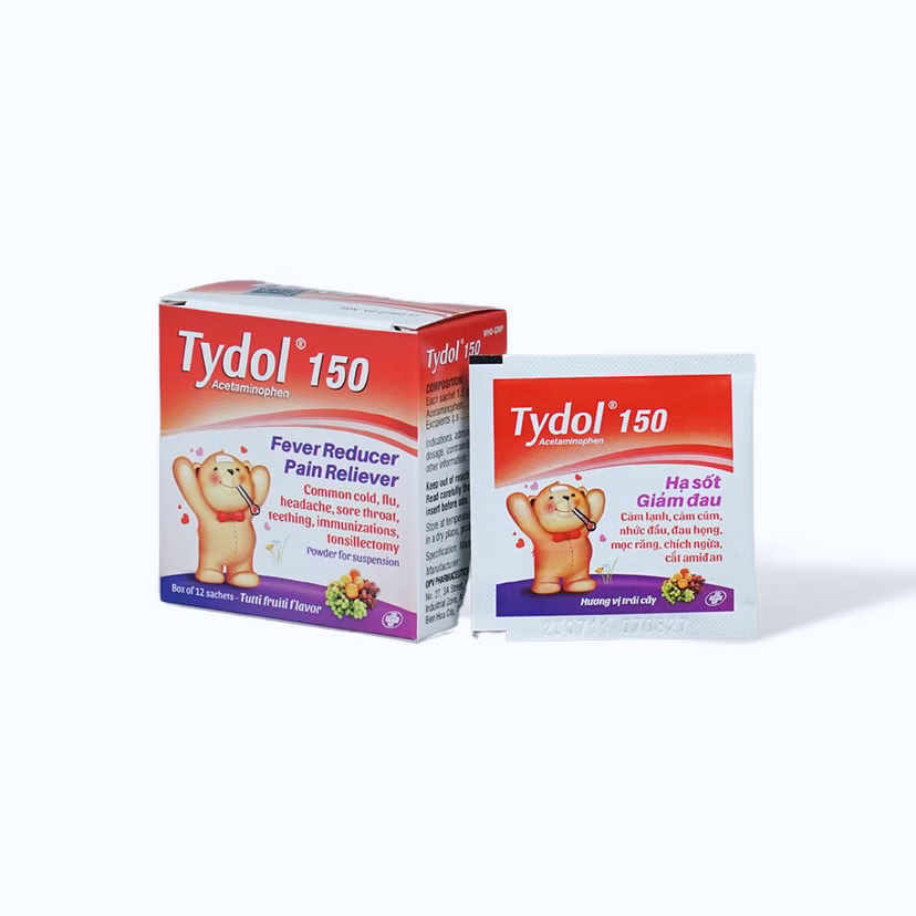 Bột pha uống Tydol 150mg giảm đau từ nhẹ đến vừa và hạ sốt (hộp 12 gói)Bột pha uống Tydol 150mg giảm đau từ nhẹ đến vừa và hạ sốt (hộp 12 gói)