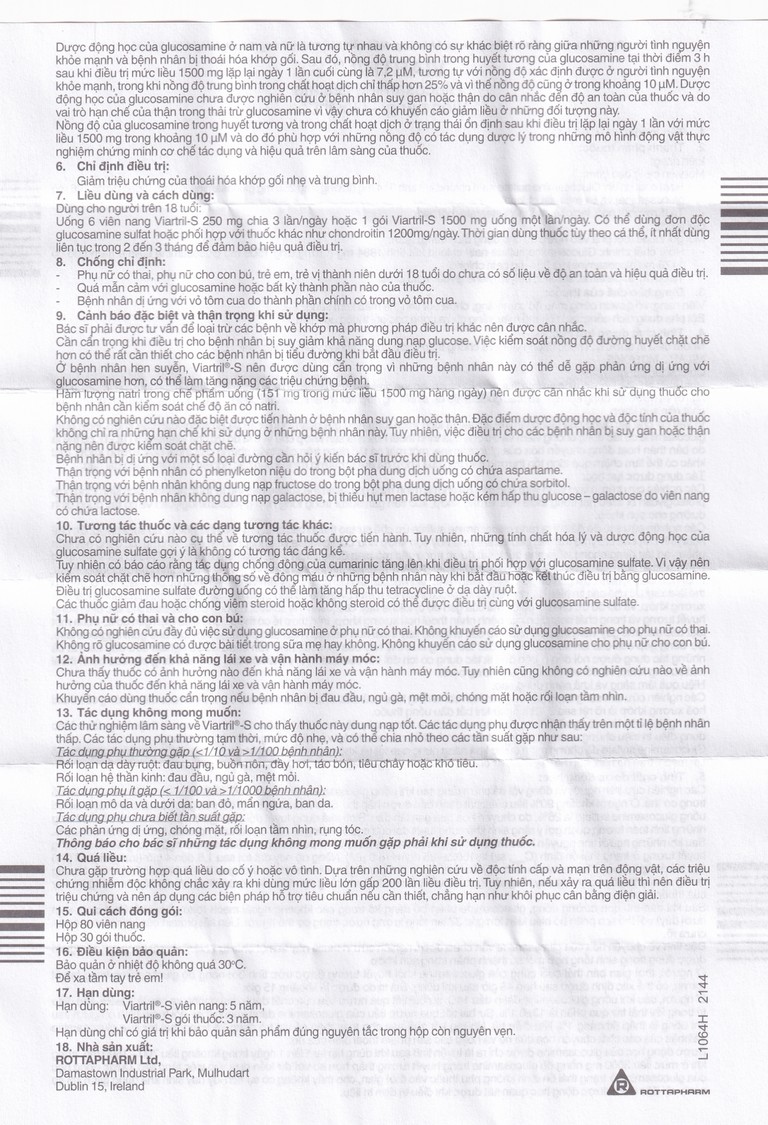 1 gói Viartril-S 1500 mg uống một lần/ngày.