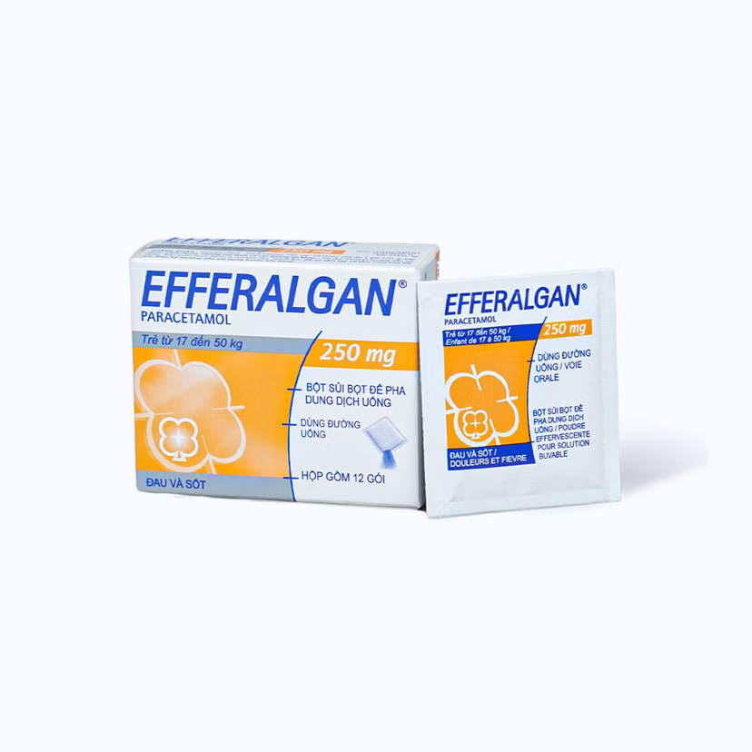 Bột sủi bọt Efferalgan 250mg trị đau đầu, đau răng, sốt, nhức mỏi cơ, đau bụng kinh (hộp 12 gói)SẢN PHẨM