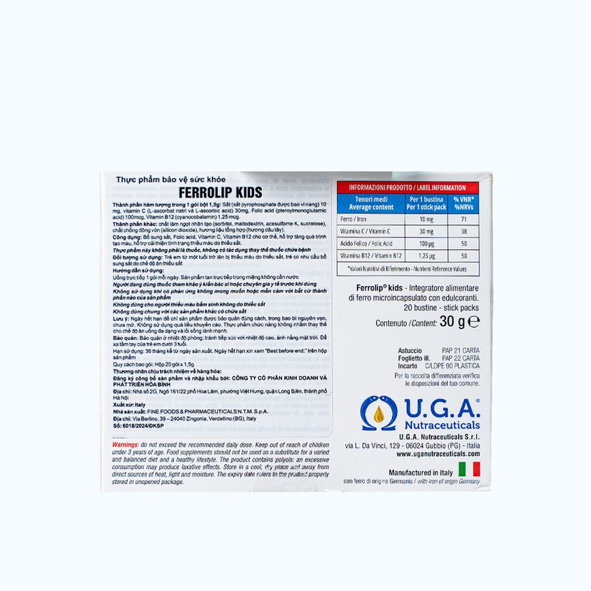 Bột uống Ferrolip Kids bổ sung sắt vị dâu (Hộp 20 gói)SẢN PHẨM