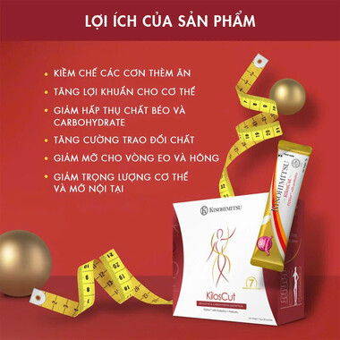 Kinohimitsu KilosCut được tạo thành từ công thức độc quyền của các thành phần giảm béo, men vi sinh và prebiotic giúp thúc đẩy giảm cân với cơ chế đốt cháy calo đồng thời kiềm chế cảm giác thèm ăn một các tự nhiên. Sản phẩm tiện lợi với lối sống bận rộn, có thể mang đi bất cứ nơi đâu để sử dụng.