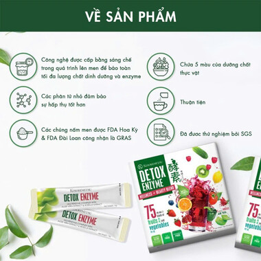 Kinohimitsu Detox Enzyme – một hỗn hợp enzyme cô đặc có nguồn gốc từ thực vật. Lựa chọn cẩn thận 75 loại trái cây và rau quả được lên men trong 365 ngày bằng quy trình độc quyền để sản xuất các enzyme tiêu hóa có tác dụng vượt trội hỗ trợ môi trường đường ruột khỏe mạnh, giải độc cơ thể và hấp thụ chất dinh dưỡng.