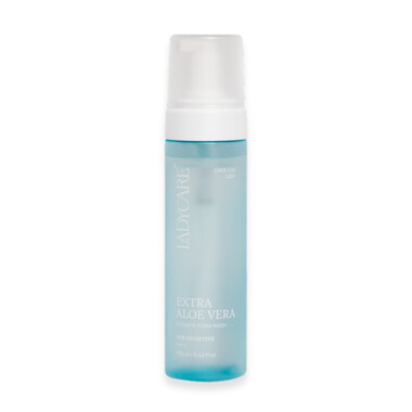 Bọt vệ sinh Ladycare Extra Aloe Vera được chiết xuất từ lô hội, trà xanh, hoa cúc La Mã, dầu olive hoạt hóa và vitamin E.