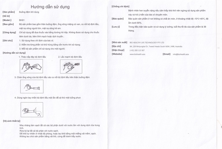 Buồng đệm khí dung Inhalation Chamber BH01 được sản xuất bởi Bio Healthy Life Technology PTY LTD tại Úc, chuyên cung cấp các sản phẩm chăm sóc sức khỏe chất lượng cao. Với hơn 20 năm kinh nghiệm trong ngành, BioHealth đã khẳng định được vị thế của mình trên thị trường quốc tế và đạt được chứng nhận ISO 13485:2016 và CE, đảm bảo chất lượng và an toàn của sản phẩm. Sứ mệnh của BioHealth là mang đến các giải pháp chăm sóc sức khỏe tối ưu, giúp nâng cao chất lượng sống cho người tiêu dùng trên toàn thế giới.