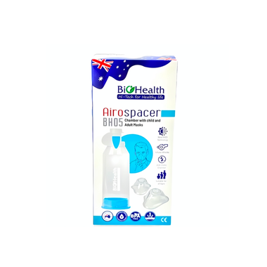 Buồng đệm khí dung BIOHEALTH BH05 được thiết kế đặc biệt để phối hợp sử dụng cùng với chai xịt hen suyễn. Nhờ thiết kế tiên tiến và van 2 chiều, sản phẩm này giúp tối ưu hóa việc phun, đảm bảo lượng khí dung cần thiết đến với phổi mà không bị lãng phí.
