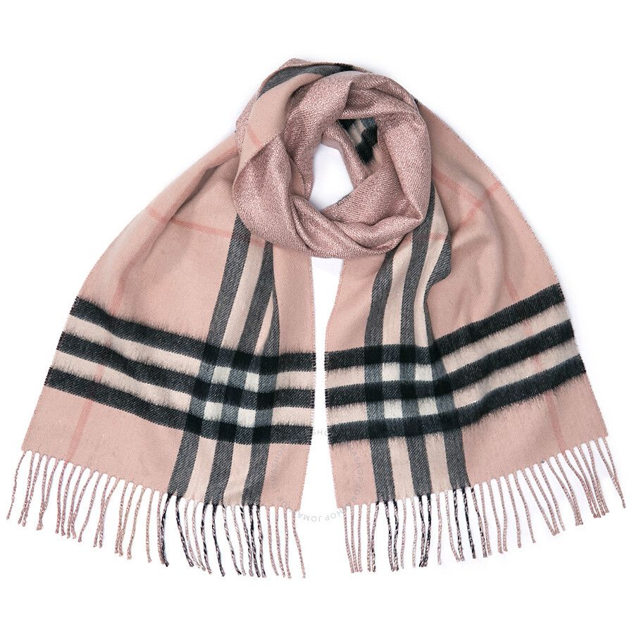 Burberry Reversible Metallic Check Cashmere Scarf – Ash Rose