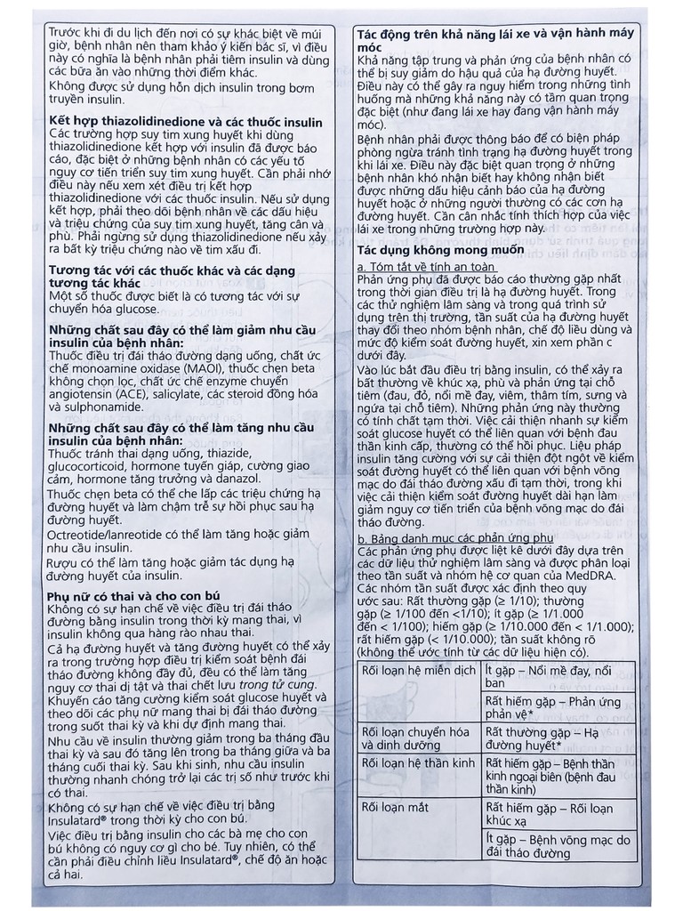 Hạ đường huyết có thể xảy ra nếu liều insulin quá cao so với nhu cầu insulin. Những bệnh nhân có sự kiểm soát glucose huyết được cải thiện rõ, ví dụ do liệu pháp insulin tăng cường, có thể có thay đổi về những triệu chứng cảnh báo thường gặp của hạ đường huyết và phải được bác sĩ thông báo trước. Những triệu chứng cảnh báo thường thấy có thể mất đi ở những bệnh nhân bị đái tháo đường đã lâu.