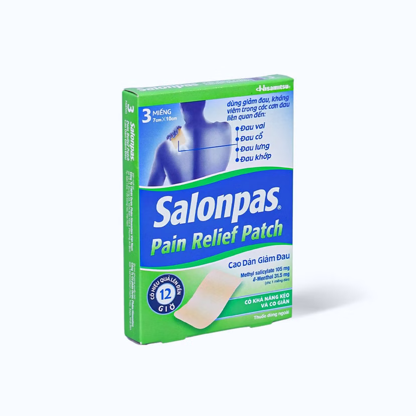 - Cao dán giảm đau Salonpas Pain Relief Patch Hishamisu là sản phẩm Dược phẩm Hisamitsu Việt Nam sản xuất