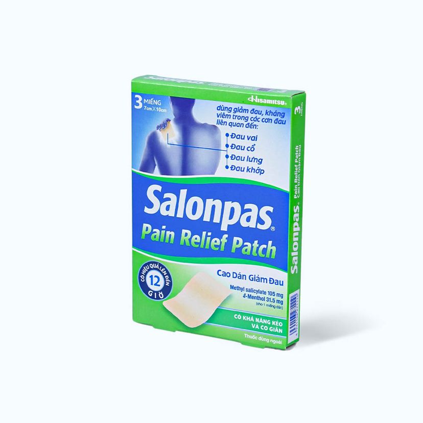 Cao dán Salonpas Pain Relief Patch 7cmx10cm giảm đau vai, đau cổ, đau lưng, đau khớp (hộp 3 miếng)