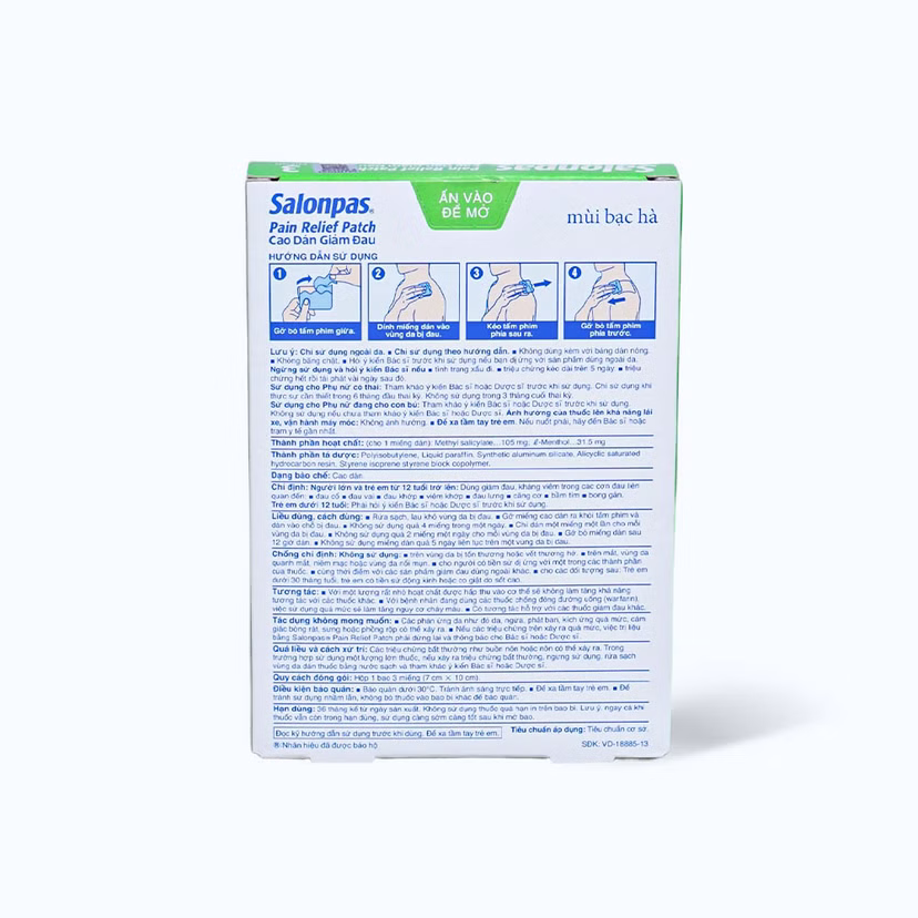 Cách dùng Cao dán Salonpas Pain Relief Patch