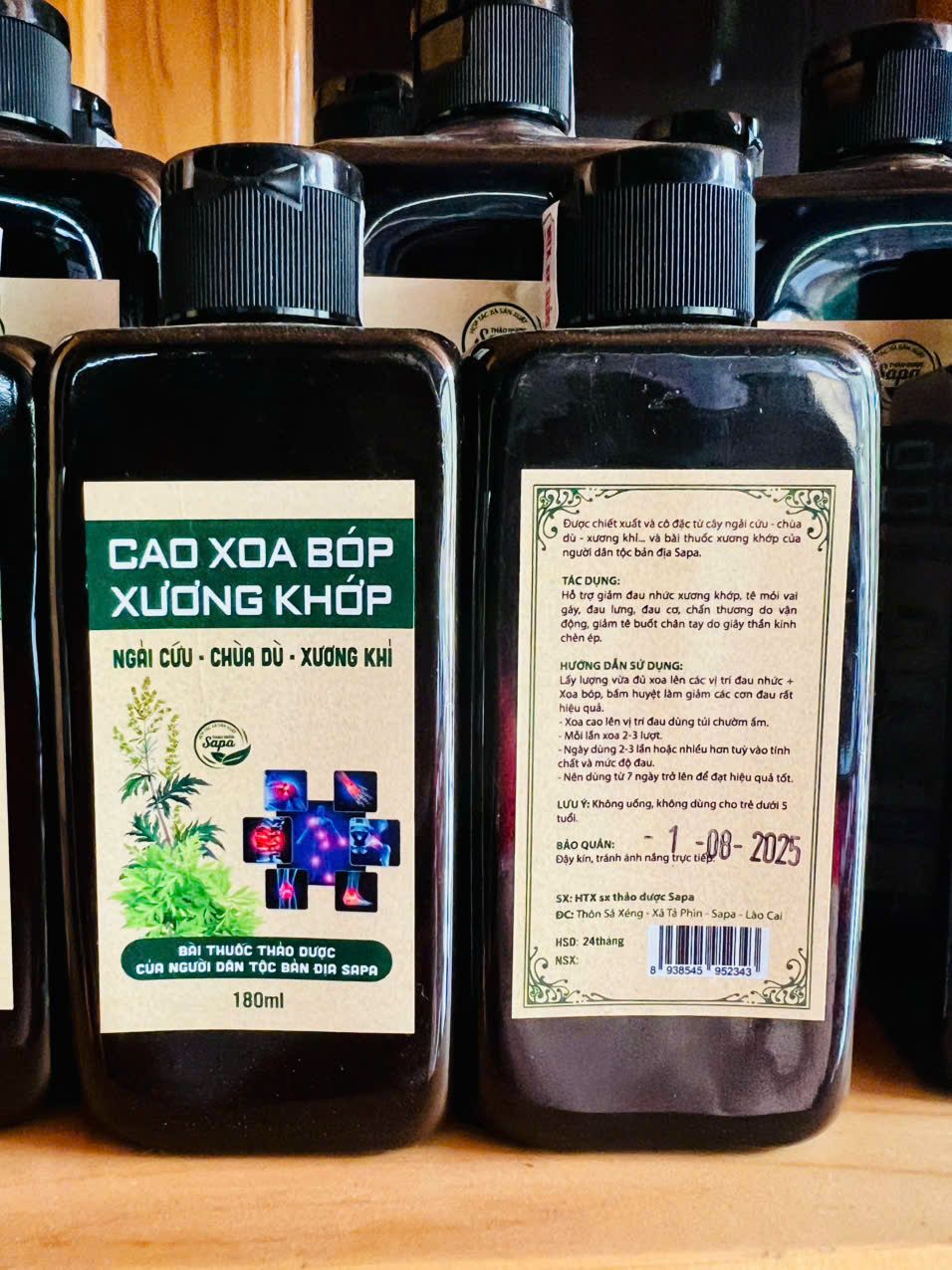 Được chiết xuất và cô đặc từ cây ngải cứu – chùa dù – xương khỉ… và bài thuốc xương khớp của người dân tộc bản địa Sapa.