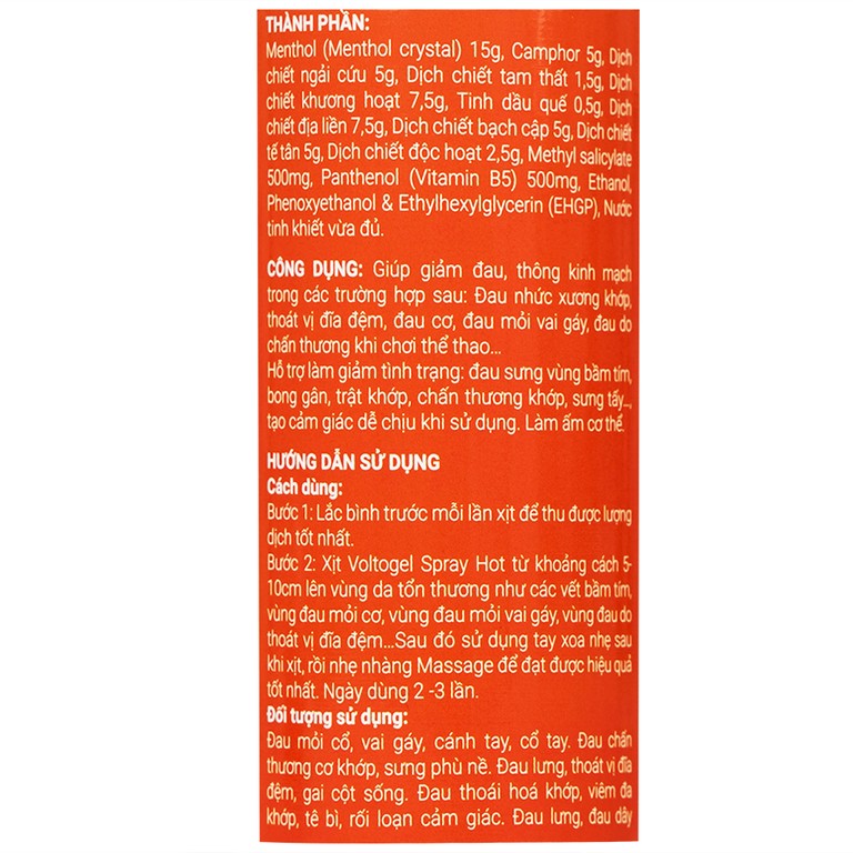 Thành phần của Chai xịt nóng Voltogel