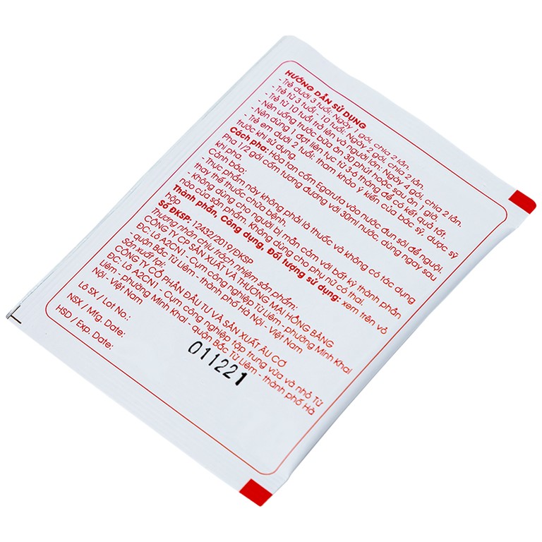 Cách pha: Hòa tan cốm Egaruta vào nước đun sôi để nguội. Pha 1/2 gói cốm tương đương với 30ml nước, dùng ngay sau khi pha.