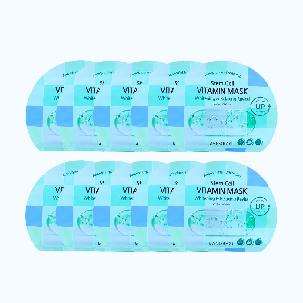 Combo 10 miếng mặt nạ BANOBAGI Stem Cell Whitening & Relaxing Revital Dưỡng Sáng, Thư Giãn Da (Miếng 30g)