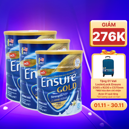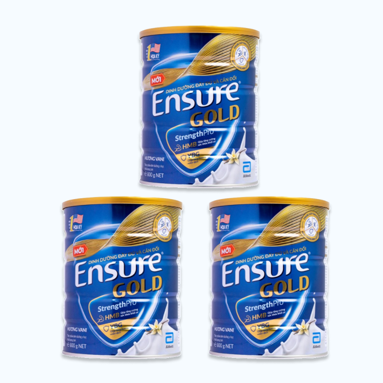 Combo 3 lon Sữa bột dinh dưỡng ENSURE GOLD hỗ trợ tăng cường sức khỏe và hệ miễn dịch hương vani (800g)Combo 3 lon Sữa bột dinh dưỡng ENSURE GOLD hỗ trợ tăng cường sức khỏe và hệ miễn dịch hương vani (800g)