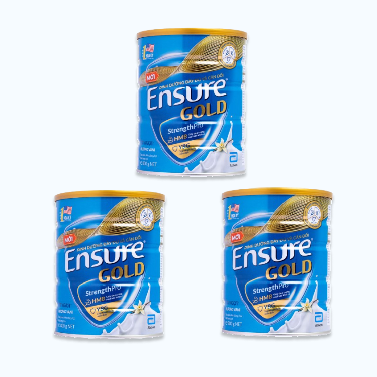 Combo 3 lon Sữa bột dinh dưỡng ENSURE GOLD tăng cường sức khỏe và hệ miễn dịch hương vani ít ngọt (800g)SẢN PHẨM