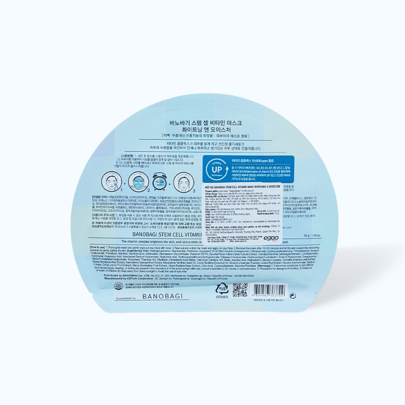 Combo 5 miếng mặt nạ BANOBAGI Whitening & Moisture Dưỡng Sáng Và Cấp Ẩm Cho Da (Miếng 30ml)Combo 5 miếng mặt nạ BANOBAGI Whitening & Moisture Dưỡng Sáng Và Cấp Ẩm Cho Da (Miếng 30ml)
