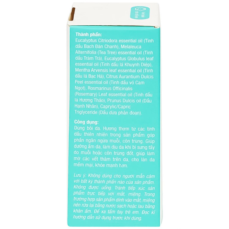 Dùng bôi da. Hương thơm từ các tinh dầu thiên nhiên trong sản phẩm góp phần ngăn ngừa muỗi, côn trùng. Giúp dưỡng ẩm da, làm dịu da khi bị sưng tấy do muỗi hoặc côn trùng đốt, giúp làm mờ các vết thâm trên da, cho làn da mềm mại, khỏe mạnh hơn.