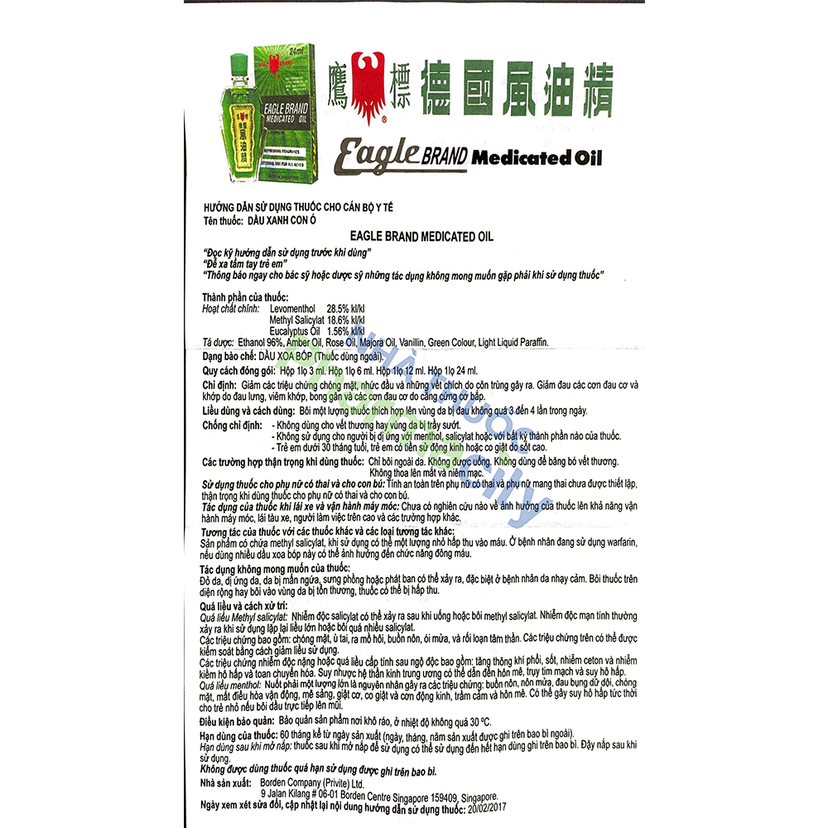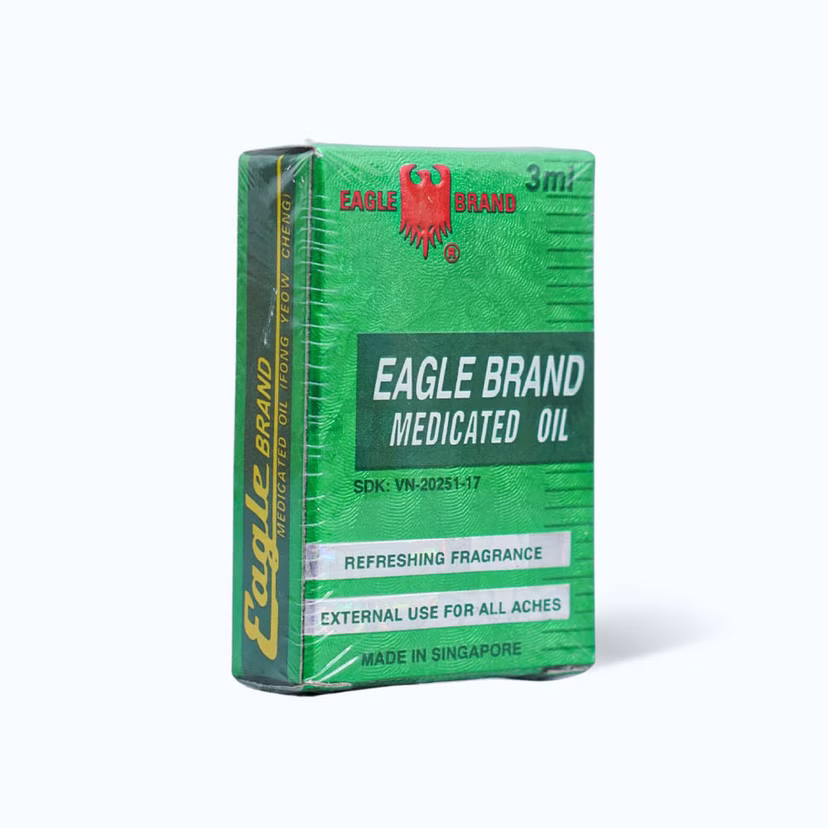 Dầu gió Eagle giảm các triệu chứng cảm lạnh, ho khan, nhức đầu, sổ mũi (chai 3ml)Dầu gió Eagle giảm các triệu chứng cảm lạnh, ho khan, nhức đầu, sổ mũi (chai 3ml)