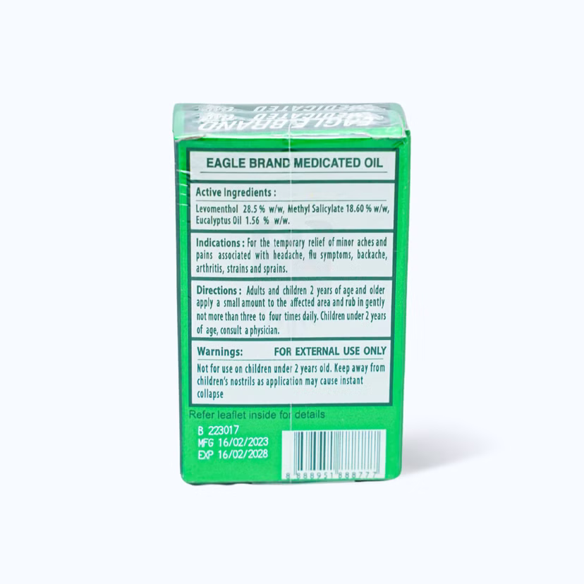 Dầu gió xanh Eagle Brand trị cảm cúm, sổ mũi, nghẹt mũi, chóng mặt, say tàu xe (chai 6ml)Dầu gió xanh Eagle Brand trị cảm cúm, sổ mũi, nghẹt mũi, chóng mặt, say tàu xe (chai 6ml)