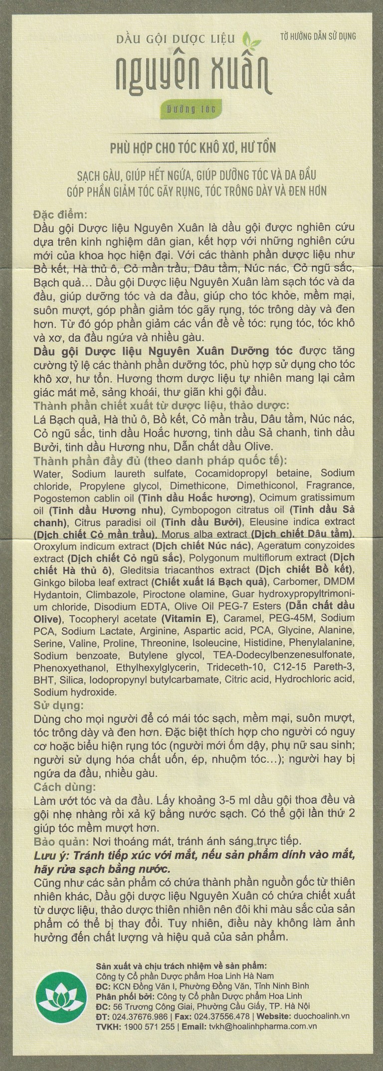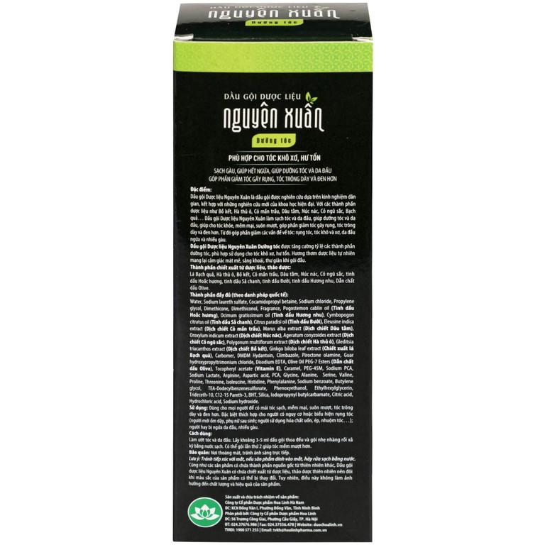 Thành phần của Dầu gội dược liệu Nguyên Xuân xanh lá