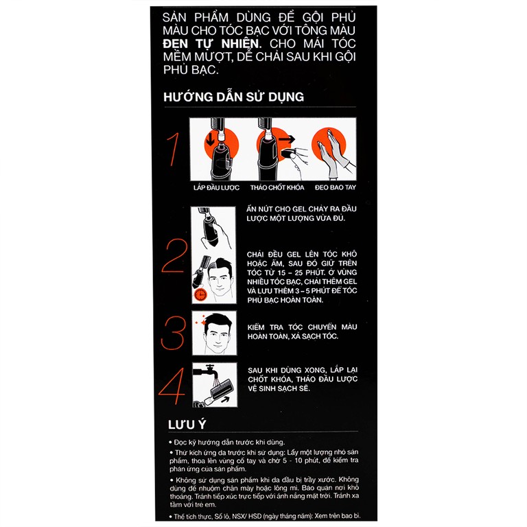 - Màu đen tự nhiên, che phủ tóc bạc hiệu quả trong 15 – 25 phút.