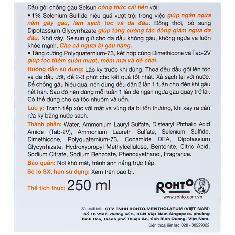 Thành phần của Dầu gội chống gàu Selsun Rohto