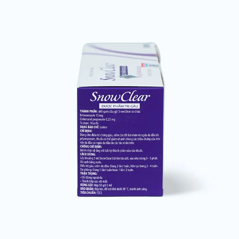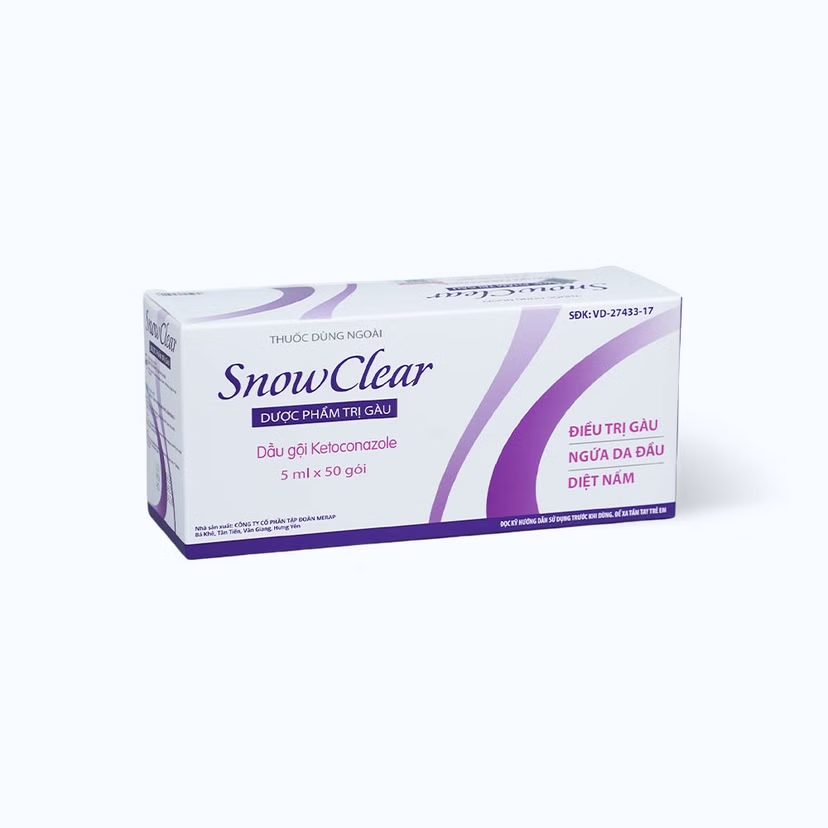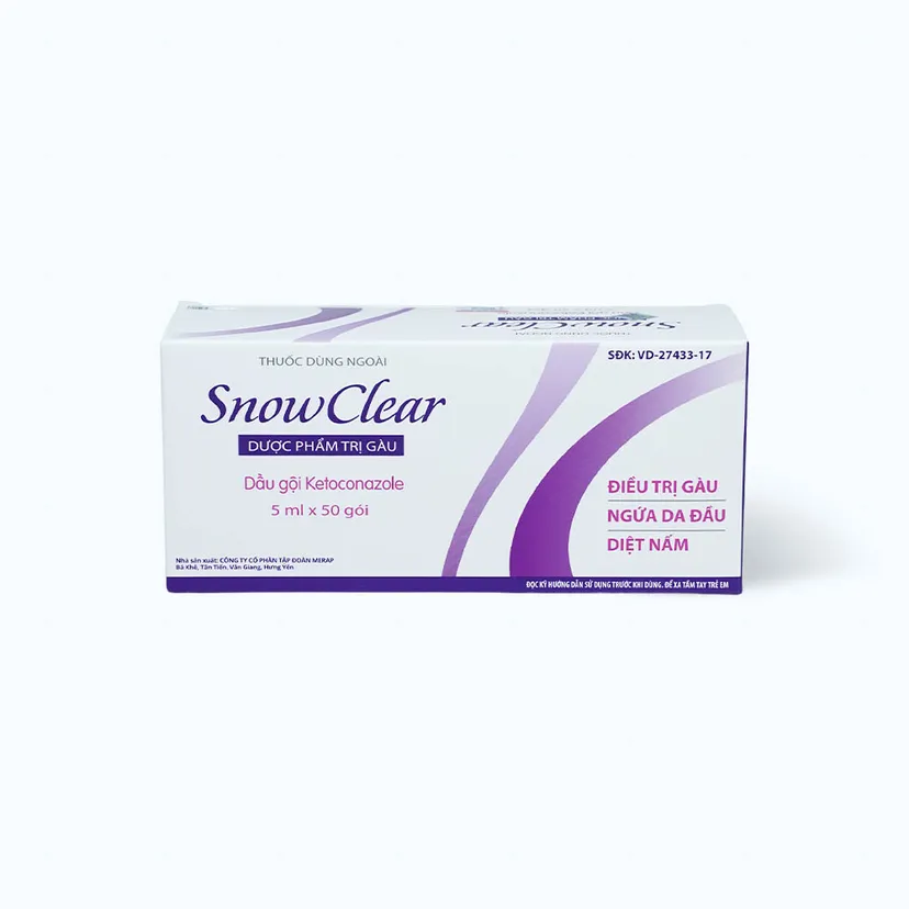 Dầu gội Snow Clear trị gàu và diệt nấm da đầu Snowclear 50 gói được chỉ định dùng để điều trị chứng gàu, viêm da tiết bã nhờn và ngứa trên da đầu do Pifyrosporum. Thuốc có thể giảm nhanh chóng các triệu chứng của tróc vảy da và ngứa của da đầu do các tác nhân trên.